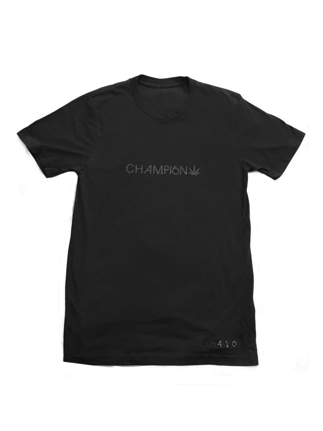 Heat transferred logo with cannabis leaf embellishment